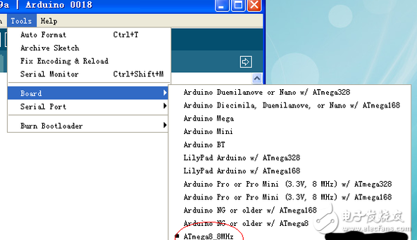 2、如果是ATmega 8-16PU,在選板子時直接選擇“arduino NG or w / ATmega 8“就可以了。