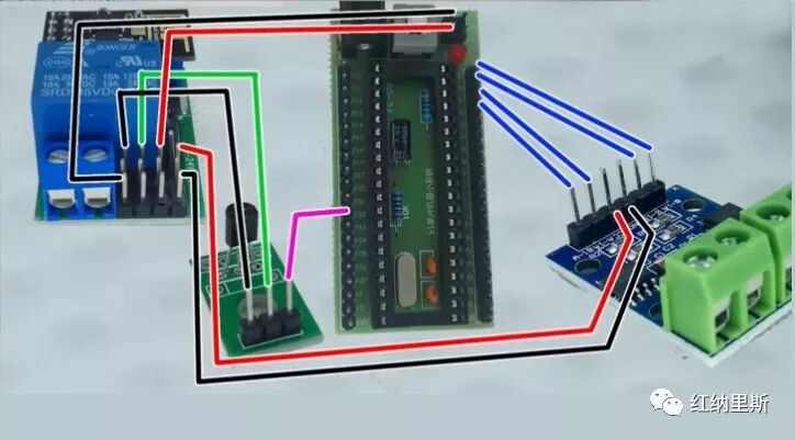 01 準備材料 物聯網開關、51單片機、8050三極管、兩個電機、2路電機驅動模塊 02 接線 將電流電機驅動板正負極接到物聯網開關的正負極(給驅動板通上電)。驅動板的B-1A、B-1B分別接到單片機的P00、P01,驅動板的A-1A,B-1B分別接到單片機的P02、P03。單片機電源接口接到物聯網開關電源輸出端口(給單片機接上電源)。物聯網開關與51單片機通信的話須要用個三極管作為一個通信轉接。三極管C極接到單片機的P32,B極接到物聯網開關的多功能輸出接口(數據輸入)。E極接到物聯網開關負極。 通上電,此接的是5V電源。效果圖如下: 03 網絡配置 首次使用物聯網開關須配置wifi,具體操作請看前面章節。如果物聯網開關已配置,請跳過此步驟。 04 物聯網管理平臺 預先添加好設備(具體操作請看前面章節)。點擊右上角的工具按鈕,彈出對話框,在對話框中找到IO03(R)選擇“單線通信”,面板樣式選擇“用戶自定2”,然后點擊保存,退出對話框。最后再次點擊中間刷新按鈕。 這時就會在設備界面上多了個IO03波形圖標,點擊圖標。 彈出對話框,對話框中我們可以看到有四條滑動條。第一條為方向,第二條為速度。這個方向有八個命令。也可自定命令,具體程序代碼放在公眾號“紅納里斯”,回復“直流電機”即可獲取。 現在我們用這個命令來做演示,在方向條滑到96時,電機轉動方向為反方向。拖動速度條,這時速度也發生變化。 當滑動方向條為32時,一個電機停止,另一個電機轉動。 大家也可以加入我們的QQ群互相學習,討論。 關注微信公眾號:紅納里斯 學習交流①群:203847769 學習交流②群:463316893