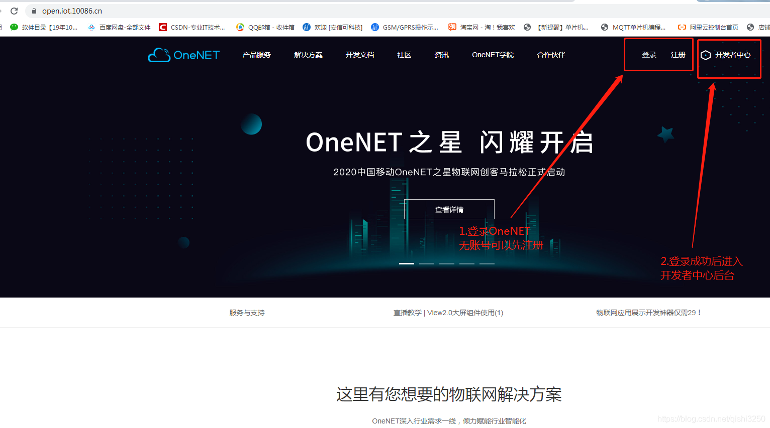 1.打開Onenet官網:https://open.iot.10086.cn/