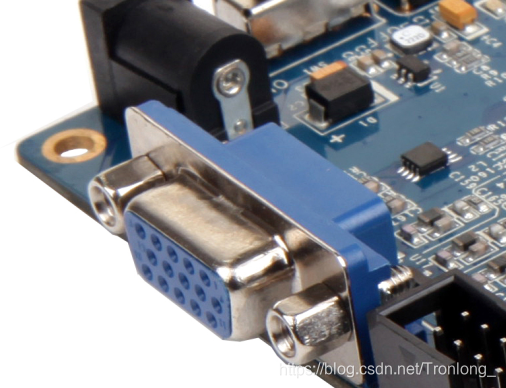 VGA視頻輸出接口J8是VGA視頻輸出接口,分辨率可達1024*1024,使用的VGA視頻芯片是芯海科技的CS7123,以下為VGA輸出接口的引腳定義: