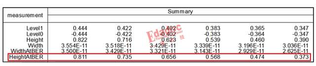 框框從大到小分別是1dB到6dB的眼圖結果,下面是具體的眼圖眼寬的結果列表。從左到右分別是1dB到6dB的結果。