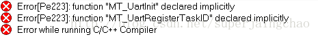 Error[Pe223]: function "MT_UartInit" declared implicitly