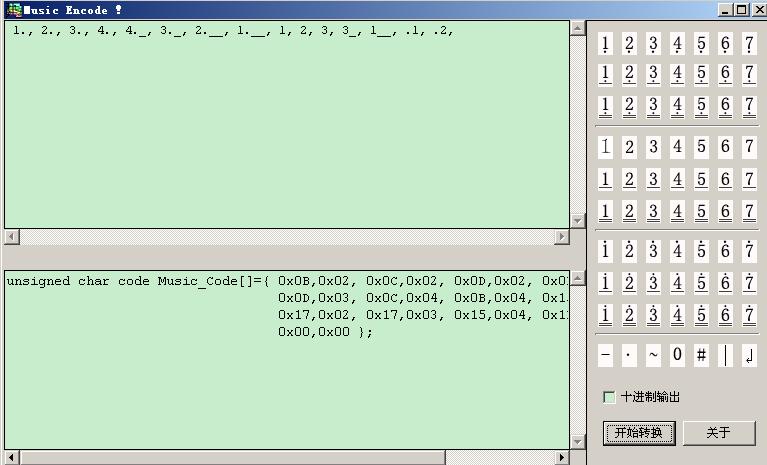 包含有仿真文件和 任何音樂的頻率表生成器MusicEncode.exe,大家用他可以把任何音樂都在開發板上用單片機+蜂鳴器來演奏出來.見下圖: