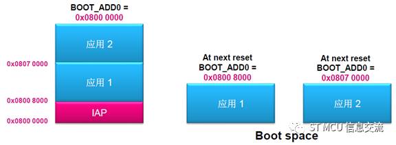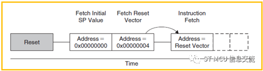 前言 初次接觸到STM32F7,可能會有個疑惑,為什么0地址變成了ITCM RAM的起始地址。系統復位還是從地址0處開始執行嗎?如果是,那這似乎看起來是沖突的。實際上,STM32F7是基于Cortex-M7內核,而Cortex-M7和Cortex-M3/M4的復位序列有些不一樣。本文中,將針對這個問題做詳細講解。 STM32F4的復位序列 STM32F4基于Cortex-M4。對于基于Cortex-M3/M4的芯片,復位后總是從0x00000000地址處,取主堆棧指針(MSP)的值,從0x00000004處,取出PC的初始值(這個值是復位向量),然后從這個值對應的地址處取指。 這兩個值,就是中斷向量表里的第一個和第二個表項的值。 在Cortex-M3/M4里,復位后默認中斷向量表在0地址開始的位置。之后,可以通過修改VTOR寄存器的值,重定位中斷向量表。在IAP的應用中,我們會遇到這種情況,如下圖: 上電復位,先執行IAP程序。此時用到的是位于0地址處的IAP程序的向量表(雖然圖中說此時VTOR的值等于0x08000000,實際上,因為ST MCU硬件提供了存儲器地址重映射的功能,通過boot引腳的配置,已經將0x08000000處的存儲空間重映射到了地址0處,所以0x08000000和地址0x00000000處開始的存儲空間是同一塊物理空間,其內容當然也是一樣的。所以不用修改VTOR的值,VTOR=0也是一樣的)。言歸正傳,上電后,先從IAP復位中斷程序開始執行IAP程序,執行完IAP程序后,需要跳轉到用戶程序,這時就需要將向量表重定位到用戶程序的向量表位置(修改VTOR寄存器的值到用戶向量表的起始地址)。 這是M3/M4的情況,STM32F7之前的所有芯片都是一樣的。 STM32F7的復位序列 前面講的那些情況,在STM32F7中就有些不一樣了。在ARM Cortex-M7的Generic UserGuide中,有一段如下描述:“On system reset, thevector table is at the addressconfigured at implementation, typically0x00000000. ”從這段話,我們可以看出,在M7中,復位后向量表的位置不是固定在0地址處,而是可以由各個芯片廠商自己定義。對于STM32F7來說,它是由BOOT_ADD0[15:0]和BOOT_ADD1[15:0]這兩個optionbytes決定的。 Boot 腳= 0時,由BOOT_ADD0 [15:0] 的值決定,ST默認值為0x0020 0000。這是ITCM-FLASH的起始地址(通過ART加速器,訪問FLASH); Boot 腳= 1時,由BOOT_ADD1 [15:0] 的值決定,ST默認值為0x0010 0000。這是system Bootloader的起始地址。 * 如果對BOOT_ADDx寫入的地址值超出了存儲器映射的范圍或者到了保留地址空間,系統將自動轉為下面的值: BOOT_ADD0 = 0x0020 0000; BOOT_ADD1 = 0x0000 0000(和出廠時ST默認的值0x0010 0000不一樣) 也就是說,只要你配置好了bootaddress, stm32F7芯片的硬件會自動修改向量表的偏移地址寄存器VTOR,使之與boot address相匹配。不需要再通過軟件修改VTOR寄存器。 BOOT_ADD0/ BOOT_ADD1 選項字能夠在復位后被修改,可以實現再次復位后從另一個啟動地址開始執行程序。舉例: 應用程序兩次映射,實現雙啟動。 所以,對于STM32F7來說,默認狀態下,復位后它并不是從0地址開始執行而是從0x0020 0000 或者0x0010 0000開始執行,它與ITCM-RAM從0地址處開始并不沖突。如果你非要將向量表放在0地址開始的位置(修改VTOR寄存器),也不是不可以。只是這是,如果你還要在ITCM-RAM里面跑別的程序的話,就要注意向量表不要與其它程序的地址重疊了。 |