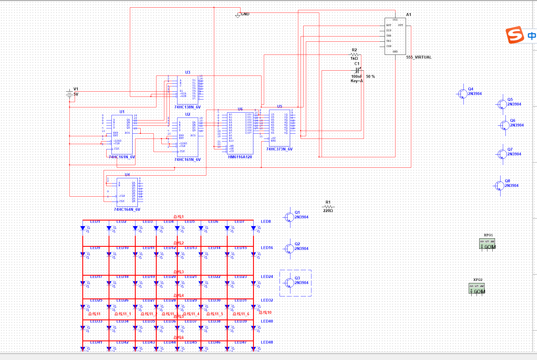 要求做一個8*8點陣的LED燈可以顯示一個“中”字