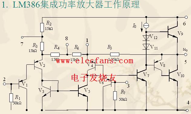 下面是lm386集成功率放大器的工作原理介紹,是lm386的內部電路圖,lm386功放最大的特點是低功耗,高增益,增益最高可達200。