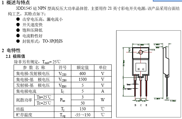 3dd15極限參數 ---------------------------------------------------------------------3dd15管腳圖封裝