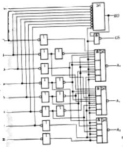 當OE輸入IE=1時,禁止編碼、輸出(反碼): A2,A1,A0為全1。
