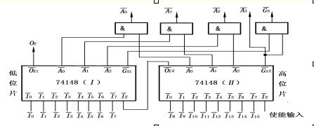 從以上的的功能表中可以得出,74ls148輸入端優先級別的次序依次為I7,I6,…,I0 。當某一輸入端有低電平輸入,且比它優先級別高的輸入端沒有低電平輸入時,輸出端才輸出相應該輸入端的代碼。例如:I5=0且I6=I7=1(I6、I7優先級別高于I5) 則此時輸出代碼010 (為(5)10=(101)2的反碼)這就是優先編碼器的工作原理。
