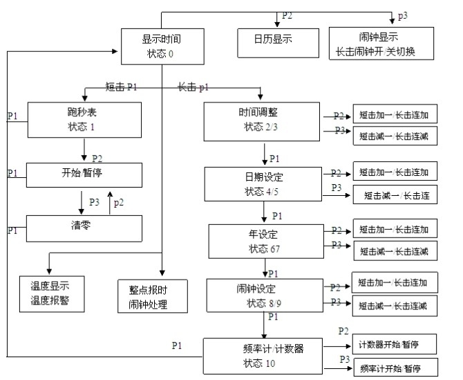 功能:秒表,鬧鐘,日歷,計數(shù)器,頻率計 時鐘