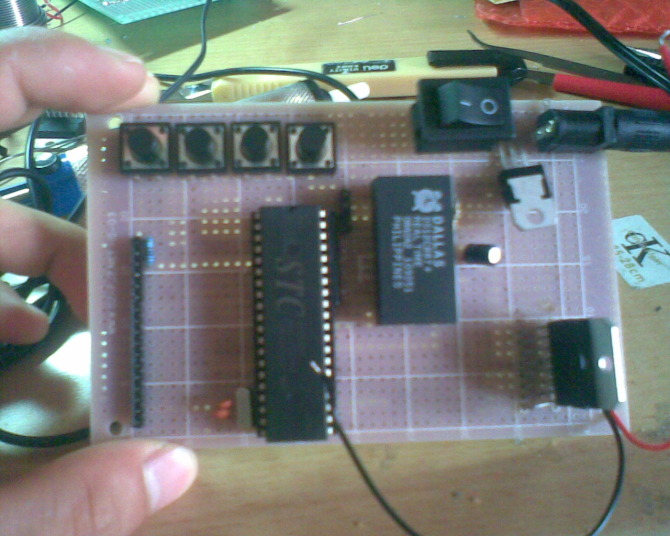 在科聯(lián)看到其他人的作品后有很多的覺悟,一方面很慚愧自己做成那樣,強人很多;另一方面覺得別人有些方案很好,值得借鑒;所以在第二次做的時候就能走錫就不飛線,飛也只飛很短,不用數(shù)碼管改用液晶,還加多了ds12c887做時間日期的顯示。在第二次做遇到的問題主要是編程上的,溫度顯示經(jīng)常會有錯,后來知道在溫度轉(zhuǎn)換時要先把中斷關了,不然沒轉(zhuǎn)完中斷又產(chǎn)生所以出錯。還有一個比較大的問題就是開始液晶一直無法顯示12c887讀回來的時間,開始讀回來的全是0,以為是程序問題,所以浪費很多時間在上面,后來又懷疑電路,但焊了兩次結(jié)果還是一樣,所以就去買了新的12c887。新的就能讀回來,但全是秒,所有的寄存器都是一秒跳一下,而且數(shù)值也是一樣的。用杜邦線在開發(fā)板上試又正常,后來看學習板上的原理圖知道液晶和DS12c887是共用一個IO口的,結(jié)果就改成用一下IO口就行了,但現(xiàn)在我還不知道為什么可以這樣用。后面就是一些程序的小問題要不斷的調(diào),現(xiàn)在下載軟件顯示成功燒寫1061次,桌面上壞了的單片機接近十個了。