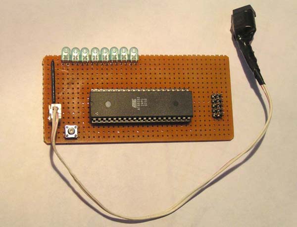 在51單片機最簡系統的其中的一個端口P0接上8個LED,就是一個典型的流水燈實驗電路。由于沒有幾個元件,說干就干,把所有元件焊在萬能板上,不需花費多長時間,就可完成整個制作。