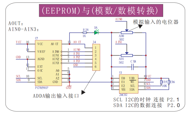 3引角對應,為當前電路中的地址選擇線,三根線可選擇8個芯片同時連接在電路中,當要與哪個芯片通信時傳送相應的地址即可與該芯片建立連接,TX-1B實驗板上三根地址線都為0。最后一位R/W為告訴從機下一字節數據是要讀還是寫,0為寫入,1為讀出。