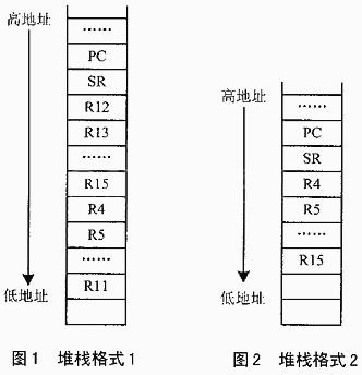 由于沒有中斷嵌套,在中斷處理中沒有別的中斷發生,那么返回的步驟和上述的進棧操作正好相反。在中斷處理完了以后,SP會自動回到圖4中③的SP位置。接著,系統會查詢到優先級最高的任務,然后把SP的指針移到優先級最高的任務的任務堆棧,進行 R15~R4的出棧工作,最后用RETI中斷返回指令返回到新的任務。因為我們把所有的任務堆棧都規定成相同的格式,所以它們之間不會產生問題。這里需要注意的是,因為系統在C編譯器的中斷處理中會對中斷進入時默認壓棧的寄存器出棧,所以在設計出棧的程序時,要先把這些內容壓棧,這樣才能正確出棧。