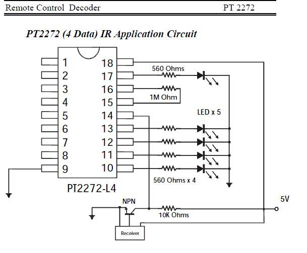 安裝在電腦上的遙控接收電路采用對應的PT2272解碼芯片,接收電路如下:
