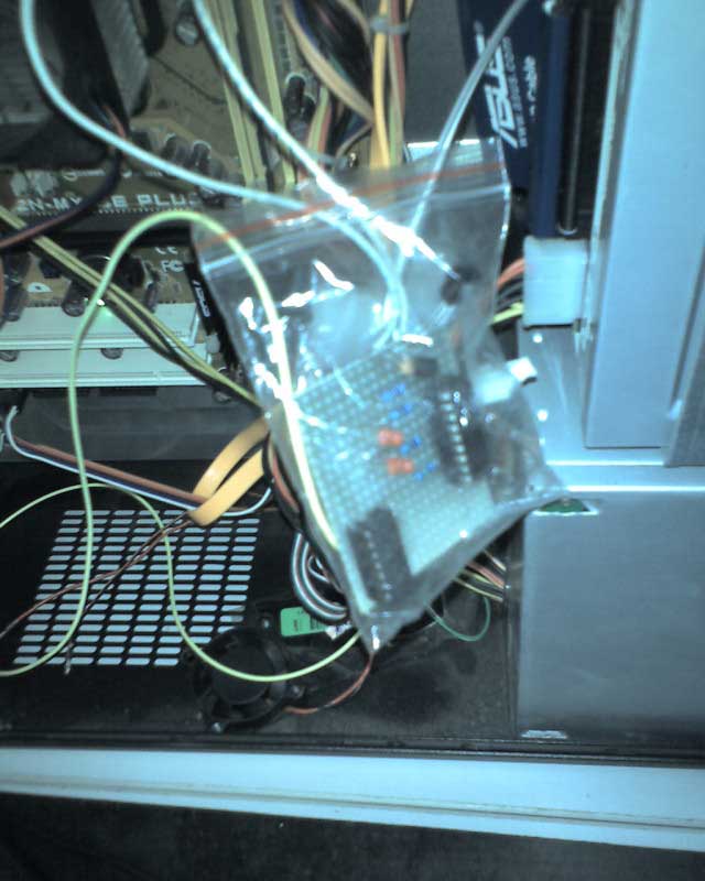為了防止電路板短路,更重要的是防止短路燒壞了主板,我用塑料袋套住了這個電路板