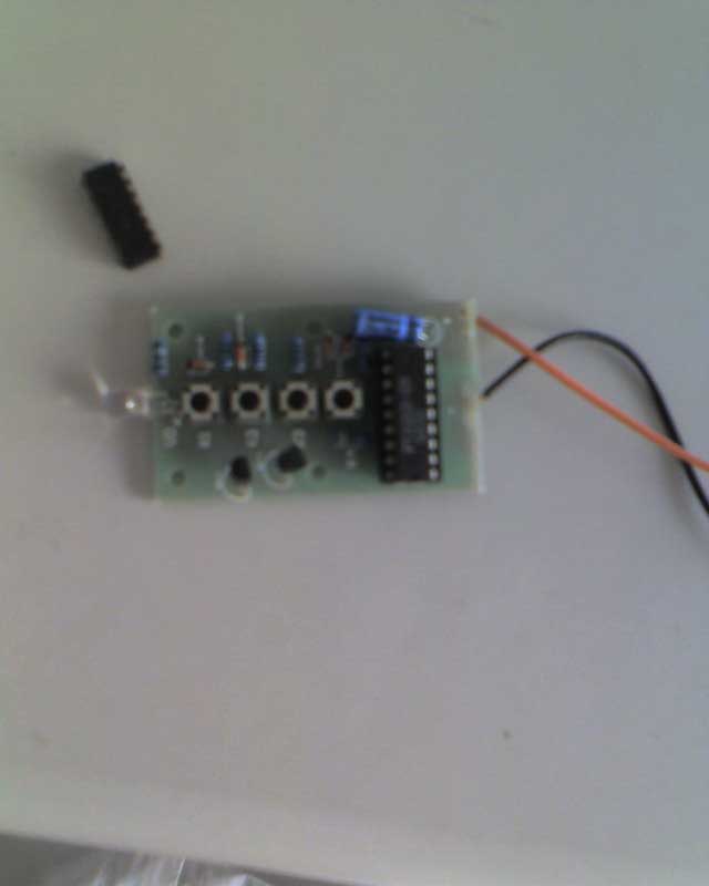 吊著的那個小板子就是我焊接的遙控接收電路,上面兩個指示燈是測試時用的
