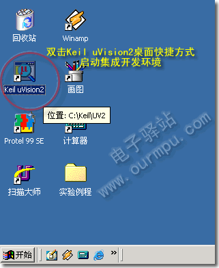 圖1:啟動Keil uVision2單片機集成開發環境