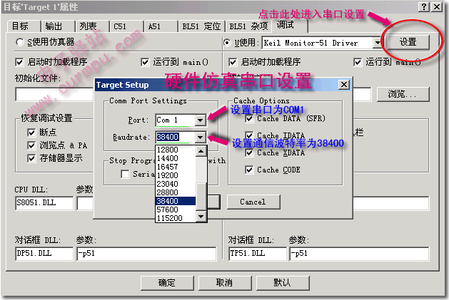 4、串口設置。串口設置如下圖18所示。串口號根據你的仿真器實際連接來設置,如你把仿真器接到COM2,那么就選擇COM2;通信波特率選擇38400即可。