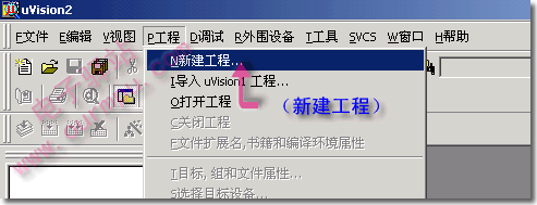 第五步:新建立Keil工程。如圖6所示,點擊 "工程" → "新建工程" 命令,將出現保存對話框(圖7)。