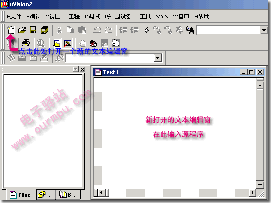 第二步: 新建文本編輯窗。點擊工具欄上的新建文件快捷按鍵,即可在項目窗口的右側打開一個新的文本編輯窗,見圖3所示。