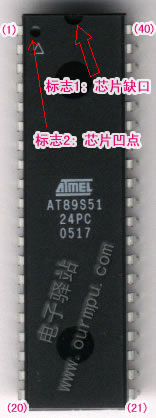 AT89S51有PDIP、PLCC、TQFP三種封裝方式,其中最常見的就是采用40Pin封裝的雙列直接PDIP封裝,外形結構下圖。
