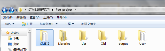 2.在里面新建 CMSIS ,libraries ,Libaries , List(用于鏈接的) , Obj(工程文件) , output (輸出hex文
