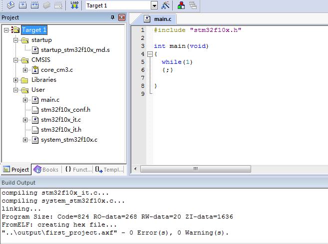 stm32f10x_it.h , system_stm32f10x.c 四個文件 復制到我們新建的fisrt_project