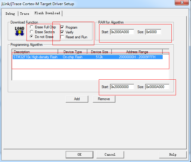 STM32F103ZET6 RAM空間是64K,用前面40K做ROM,后面做RAM,由于STM32 RAM空間映射地址是0x20000000(可以去查手冊),所以配置如下。自己加法琢磨下就通了。至于ROM空間和RAM分配多大,看實(shí)際工程需要。