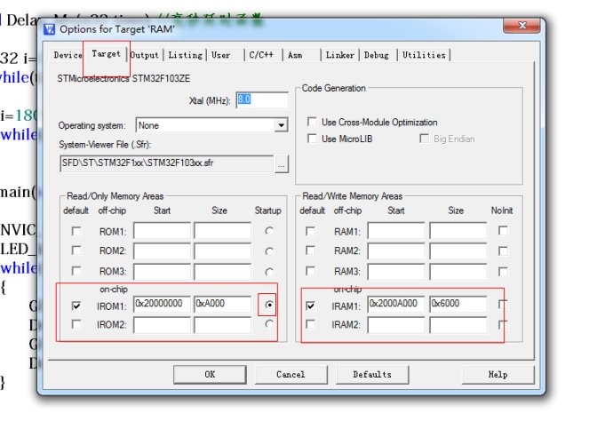 3.進(jìn)入Option for target 配置RAM調(diào)試模式下的工程選項(xiàng)。